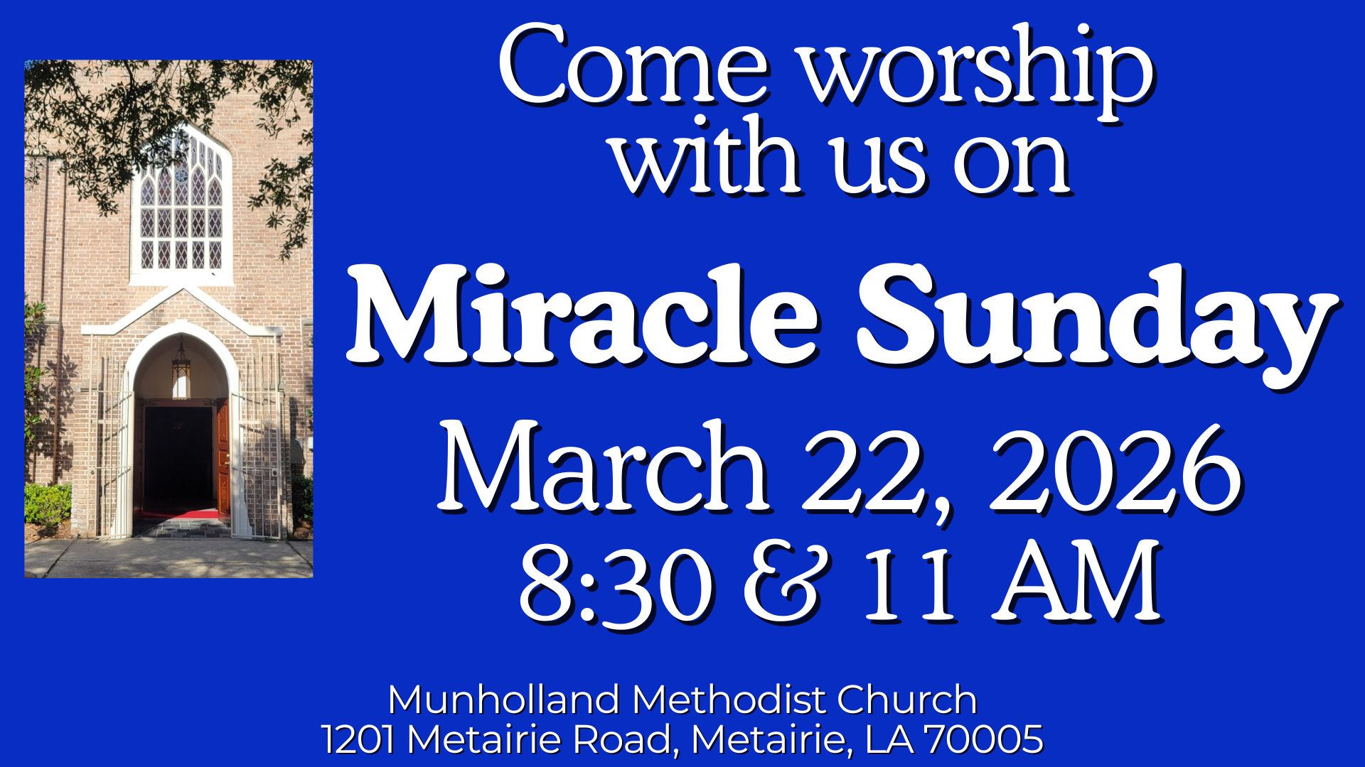 Munholland is a growing dynamic church in the heart of Metairie. Our congregation is a faith home to many in the Metairie area and beyond. Munholland is a mission-minded church serving a number of partner ministries around New Orleans. We invite you to join us in worship on Sunday mornings at 8:30 AM and 11:00 AM for a spirit-filled and life-changing service. We also have a number of Sunday School classes, small groups, and service groups. It is an easy drive from anywhere in Metairie, Kenner, and New Orleans. If you have any questions about our Children, Youth, or Adult Ministries, our staff will be more than happy to assist you.